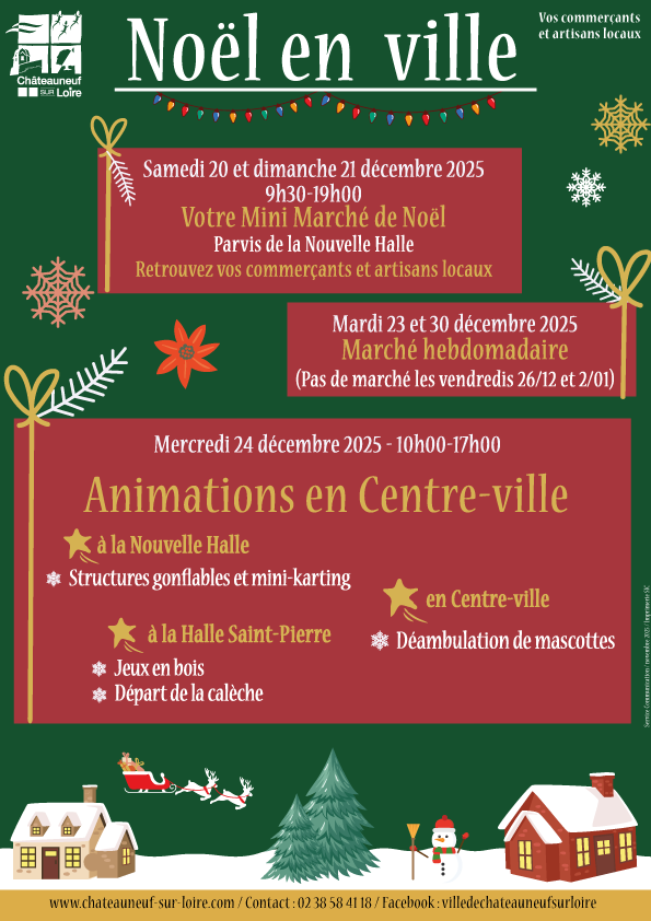 Marché hebdomadaire (pas de marché les vendredis 26/12 et 2/01)Lieu : Nouvelle Halle