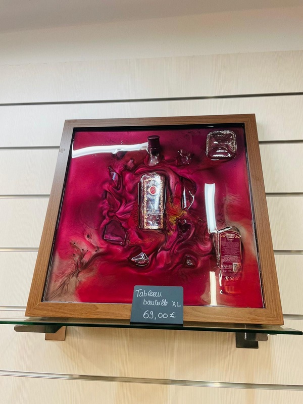 Dans une atmosphère chaleureuse, entre partage, détente et création, vous apprendrez à manipuler la résine, découvrir ses effets magiques, ses textures et ses nuances infinies. Encadré(e) par un artisan passionné, vous réaliserez vous-même une pièce décorative authentique, à votre image. Les soirées Résine se déroulent un vendredi soir sur deux et sur réservation. Création d'un tableau décoratif ou d'un cadre bouteille personnalisable. Une expérience créative et conviviale en fin de semaine. Dans une ambiance tamisée, découvrez l'art de la résine époxy et réalisez votre propre oeuvre sur cadre. Inclus : équipement complet, accéssoires, résine, pigments, encadrement, support bois, accompagnement personnalisé. Groupe limité : 1 à