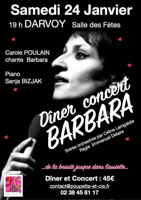 De la beauté jusque dans l'assiette... Une soirée "Poupette et Cie" orchestrée par Céline Larrigaldie. Régie : Emmanuel Delaire. Carole Poulain chante Barbara. Piano : Sanja Bizjak.