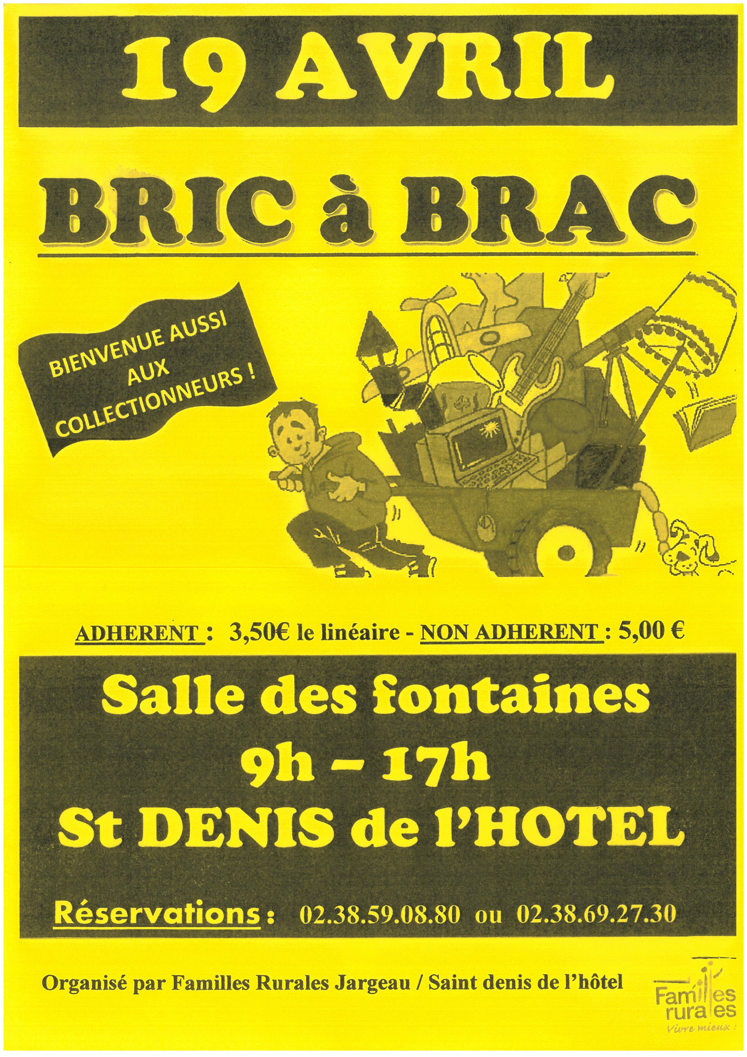 Bric à Brac organisé par Familles Rurales Jargeau / Saint-Denis-de-l'Hôtel. Bienvenue aussi aux collectionneurs !