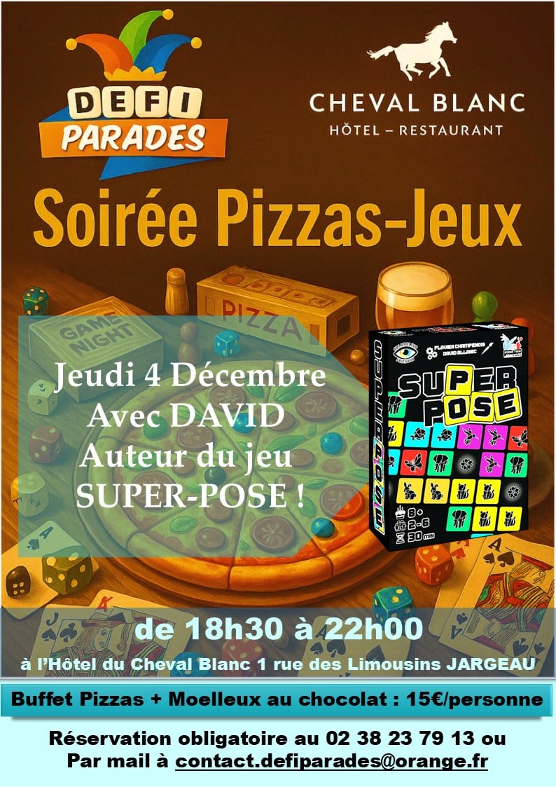 Vous venez seul(e) ou accompagné(e), on s'occupe du reste. Jeux à disposition - pizza à volonté - rires communicatifs - moelleux chocolat délicieux - bonne humeur assurée. Osez vous inscrire, places limitées.