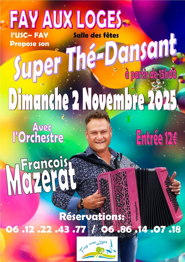 Thé dansant animé par l'orchestre François Mazerat. Ouverture des portes à 14h30.